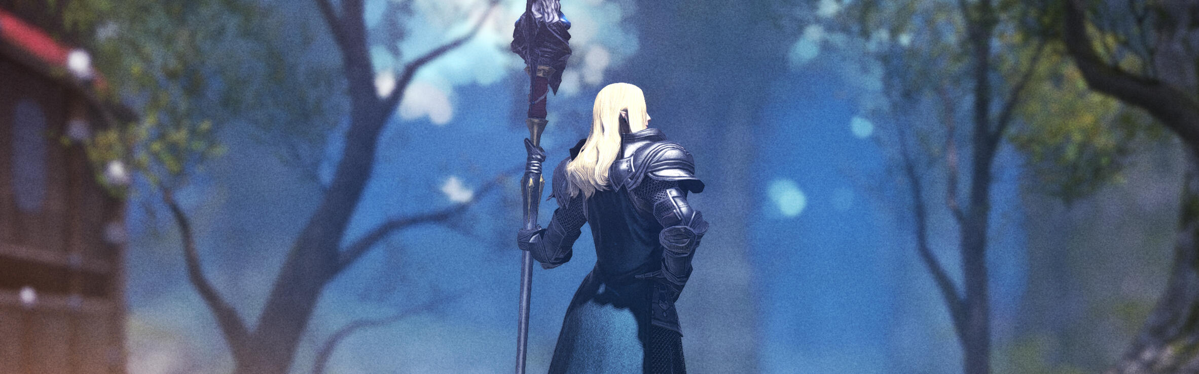 Unfortunately, he was dead long before she killed him. This was a simple truth. The wraith-knight pondered this as he stood in the old cathedral, the light of sunset kaleidoscoping through the saints entombed in stained glass: you couldn’t call it ‘living,’ what either of them had gotten up to when he was alive.He peered up into the rafters. Six round, lustrous pigeons murmured in the eaves. The cathedral towered around him, a deep-chested cave of Coerthan stone. He inspected its slopes, its mullions and transoms, the places where its weighty timbers dovetailed together below the pitch. Everything lay in its place. Even the great statue of Halone the Fury, her hoplon blazing and her spear aloft, seemed at peace looming above her altar. These birds were supposed to be there, and that relaxed him. None were ripping out and eating his liver today.The statue held a clump of marble daisies. He watched them bloom bone-white in the Fury's crushing hand. For a moment, he could not remember his name.Like Halone, like hierophant, like hail and hallelujah, he knew it began with an 'H.'It was not always like this. Another simple truth: she was terrible at upkeep, and often he found the cathedral in ruins. Yestersun she blew off the roof, spraying chunks and mortar across the fields for half a malm. He had loped out of the narthex to avoid falling rocks, only to stumble onto spears of stained-glass sharding out of the surrounding field. They were bright and vibrant and slicing, like rainbow needles. He had scowled up at her white sky (the most opaque and frigid white, a sign she was truly furious) and scolded her, chiding her for lack of restraint. Enraged, she had turned the field into a roiling dune.“Quicksand is a myth, inquisitor,” he’d shouted as the drifts swallowed him whole. “Nobody actually drowns in it!” Gasping for air, just before a shard spiraled by and sliced open his jugular: “You read too fucking much!”But that was yestersun. Today, the windows glowed like polychrome haloes; she had illuminated each saint in carmine and lavender, teal and umber and delicious burnt orange. A new detail, one that surprised him: she had lavished their feet with blades of uproarious green.Distantly an organ played. The wraith-knight did not recognize the song. He waited for the sound of footfalls, breathing, a pattering of faraway voices. Three flies buzzed around his ruddy brow.Do you know, he thought, another word that begins with 'H,' inquisitor?Music, though: he did miss this, now that it was over. He closed his eyes and tried to remember. One of the Tribunal acolytes had been a soprano, her voice gentle as a lark. Couldn't sing worth shit after he'd slit her throat, but that didn't matter. And then there was the inquisitor he'd tracked all the way to Black Brush, who had a little skill with a harp. He had forgotten the man's name, and that mattered even less; the fool died without a jaw, so what use would he have for a name?A cleaner memory came back. On evenings like this his brother played the harpsichord with the windows open and the curtains drawn. It bothered him immensely that he could not remember the hue of the curtains, which, in his memory, were always red. Like blood, like apples, like his hair: all of these were wrong. In life, the curtains had been some other color entirely. He was sure of this.Behind him, a stone fell in the nave, clattering as if tumbling down a deep, lightless well.She would not come today. This he knew in a flash of understanding: up above, in the world of the living, she had been given something to do. A novel carriere, a compulsory task. Anger pulsed through him as the cathedral spoke silently: She was meeting that witch. A stupid distraction, he told the cathedral directly. He had a terribly funny joke to tell her before she killed him again.Now the daisies were gone. The statue wept tar, and from its chiseled spine had sprouted a pair of wide, incongruously feathered wings. Above, the pigeons flapped. Crimson light sliced in from a western window, as if unstoppered from a passing cloud. He watched the light spread across the aisle, cutting the pews, sweeping the wool aisle runner like the edge of a slow, red knife. None of this was his doing, but the cathedral whispered that no one else could be more at fault.Hell, thought the wraith-knight–you are so correct, inquisitor. The word that begins with 'H.' Clap, if you please.He tried to cross the aisle. The pews stunk of musty wood. His greaves strained, but the soles wouldn't budge. He sighed.Blue gripped him like a fist, white-knuckled. Suddenly he was sure the brother's curtains had been some shade of blue.So he stayed there. A dark, furtive force kept him planted firmly on the stone, and though he would have loved to step closer and see what else she had hidden in the glass he could not move. That was more a punishment than dying, honestly–this understanding that he was stuck here for who knew how long. He would've liked an opportunity to doff his armor, set down his greatsword, and truly prepare for her: to reconnoiter this vast, holy cavern and root out some needful granule of information that would prepare him for what might come.But not today. The wraith-knight accepted that. He could wait.He was down here and dead, and that suited him. Better than being out there with her, unfortunately alive.