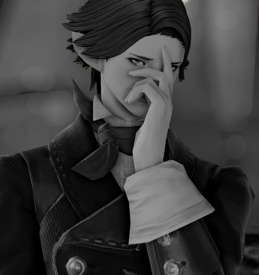 ⬩ frequently afkI am a selective, story- and development-driven writer with several years of experience in collaborative RP. If you're interested in writing with me and potential story involvement, feel free to send me a tell in-game.While FFXIV contains fantastical themes/tropes that lean into contemporary parallels (e.g., xenophobia, racism and related stereotypes, class inequality, misogyny, and many others), I will not engage with players or groups whose OOC conduct, character design, or roleplay I find offensive, insensitive, or otherwise unpleasant.DO NOT solicit this character for Ishgard-focused discords or RP communities.